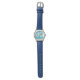 This watch is exactly what I expected. It is easy to set the time and the fit is perfect! The blue band is great for a boy and the sports theme was a hit!