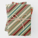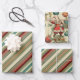 Kitschy Santa and Ornaments Complimentary Stripes Wrapping Paper Sheet