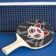 Overall, it's a nice product but for what you pay the quality isn't very good. The way it's glued together, as you can see in the pictures, is messy, the glue is visible and shiny, there's some ink staining that looks like black fluff but isn't, it won't come off. On the paddle's black surface there are also little white marks here and there. It's not too easy to show in the pictures because of the flash but I tried to showcase the little white blemishes that ruin a smooth black surface. This was meant to be a gift and it just looks sloppily put together unfortunately. A few imperfections that mar what could have been really great. The printing was neat.
