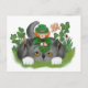Kitten and Leprechaun Find a Four Leaf Clover Postcard