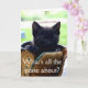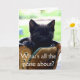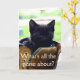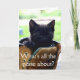 Cute kitten poking its head out of a big boot, asking the question about what is going on. On finding out it's your birthday, they give you a big birthday greeting.
