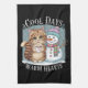 Kitten Cat and Snowman Friends Share Coffee Winter Tea Towel