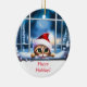 A cute holiday ornament of a cat looking through a window with a Santa hat and crescent moon. Youi can change the wording on the ornament or the font. A fun Xmas or Christmas decor piece and makes a cute gift for anyone.