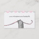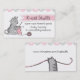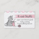 Cute updated vintage kitty cat with knitting needles and ball of yarn in grey and pink on business cards or large 'handmade with love' gift tags, product tags or hang tags for knitter or yarn crafts.