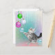 Silver tabby kitten bats playfully at Christmas ornaments holiday cat lover Christmas postcard