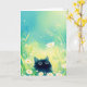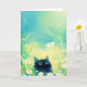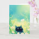 This delightful greeting card showcases an adorable black cat with wide, curious eyes, nestled among blooming daisies in a serene meadow. The lush, green background and vibrant floral details create a whimsical, magical scene, perfect for cat lovers and nature enthusiasts. With its playful design and charming expression, this card captures the innocence and curiosity of a kitten exploring the outdoors. Ideal for any occasion, this unique and enchanting card adds a touch of warmth and joy to any message, making it an unforgettable choice for friends, family, and animal lovers alike.