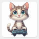 Kitten Holding Game Controller Smiling Gamer Cat Square Sticker