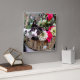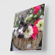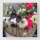 This little tuxedo kitty seems to have found new play things in this basket of flowers.