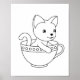 Kitten in a Cup - Cat in a Teacup Colouring Page Poster