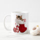 Cute tabby maine coon in cool christmas boots, with candy canes and christmas ornements, designed by artist Maryline Cazenave.