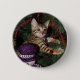 Tabby kitten in Christmas tree says i iz being good whatchoo mean Merry Christmas button pin back