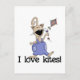 A really cute kitten wearing blue overalls flies a kite and text reads "I love kites!" on Tshirts, mugs, mousepads, bags, and more.