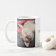 This love mug reads: “You make me feel so good!”. Tell him how much you love him with this adorable kitten mug.