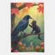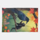 Bird Kitten and Raven Crows, Raven perched in a oak tree greeting a small cat kitchen towel.  Colourful kitchen towel decor.  Fantasy Colourful Background design of Garden Birds theme that you can change styles to match your kitchen decor.  Magical garden trees, birds and small grey kitten. The early bird gets the kitty. Pretty Oak Tree Leaves and Garden Flowers.  Bird fantasy springtime hand towels. You can customise size and style of your towels black bird and kitten style and theme. Bird image is sizeable too. Perfect beautiful wild birds of a feather lovers gift idea. The smartest birds in the world are Crows and Ravens. And kittens are always cute.