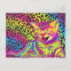 Kitten on rainbow leopard print background postcard