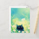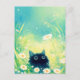 This heartwarming design features an incredibly sweet black kitten with a thick, shaggy coat and large, soulful blue-grey eyes. Rendered in a soft, luminous watercolor style, the kitten is shown from the shoulders up, peeking curiously through a vibrant field of hand-painted white daisies. The flowers vary in size, featuring crisp white petals and cheerful yellow centers that stand out against the lush green grass and towering stems. The background is a dreamy wash of sunny yellow and sky blue light, creating the feeling of a warm, sun-drenched summer morning in a peaceful garden. The overall aesthetic is bright, hopeful, and full of natural charm, making it an irresistible choice for any fan of cats, kittens, and whimsical botanical art. This cheerful black cat postcard is a wonderful choice for sending a "thinking of you" sunshine note or a playful greeting to a friend who loves feline companions. You might choose to use this cute kitten card for a garden-themed birthday invitation or to celebrate a fun family afternoon spent at a local flower farm with your family members. It also makes a precious decorative piece for a child's bedroom wall or a bright addition to a nature journal as a small token of happiness. This versatile design is also an excellent choice for flower shop opening announcements, summer brunch thank you notes, or as a heartwarming way to share a short message of joy for any situation or event.