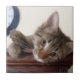 This lovely ceramic tile features an irresistible tabby kitten with large appealing eye laying on a shelf. This would be an unusual gift for a cat lover, and a cute coaster for an occasional table.