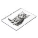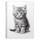 A digital rendering of a pencil sketch of a cute little kitten with black and grey on white.