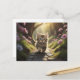 Kitten walking along the path between flowers postcard