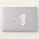 Whimsical laptop sticker with a cute kitten illustration and a blue and white dotted background. If you need assistance with placement or customisation, please use the "Contact This Designer" link on the right hand side of this page.
