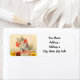 Return Address Labels featuring Meta Plückebaum’s artwork Kitten with a Red Ribbon (b. 1876). A grey kitten with dark stripes is beautifully adorned with a red ribbon. The kitten plays with a bee. Yellow flowers decorate the foreground. A wonderful gift for cat lovers and German art enthusiasts!