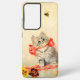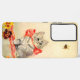 Samsung Galaxy Case featuring Meta Plückebaum’s artwork Kitten with a Red Ribbon (b. 1876). A grey kitten with dark stripes is beautifully adorned with a red ribbon. The kitten plays with a bee. Yellow flowers decorate the foreground. A wonderful gift for cat lovers and German art enthusiasts!