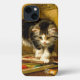 iPhone Case featuring Henriëtte Ronner-Knip’s oil painting The Young Artist (1821-1909). A black and white kitten plays with a paint set and two brushes. An adorable gift for cat lovers and Romanticism enthusiasts.