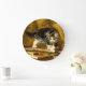 Clock featuring Henriëtte Ronner-Knip’s oil painting The Young Artist (1821-1909). A black and white kitten plays with a paint set and two brushes. An adorable gift for cat lovers and Romanticism enthusiasts.