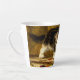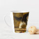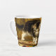 Latte Mug featuring Henriëtte Ronner-Knip’s oil painting The Young Artist (1821-1909). A black and white kitten plays with a paint set and two brushes. An adorable gift for cat lovers and Romanticism enthusiasts.