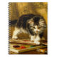 Notebook featuring Henriëtte Ronner-Knip’s oil painting The Young Artist (1821-1909). A black and white kitten plays with a paint set and two brushes. An adorable gift for cat lovers and Romanticism enthusiasts.