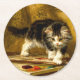 Kitten with Paint and Brushes Round Paper Coaster