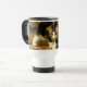 Travel Mug featuring Henriëtte Ronner-Knip’s oil painting The Young Artist (1821-1909). A black and white kitten plays with a paint set and two brushes. An adorable gift for cat lovers and Romanticism enthusiasts.