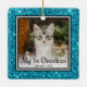 This lovely Kitten's 1st Christmas photo ornament with an aqua glitter edge, the words "My 1st Christmas", your kitty's photo and name and the year will look beautiful on your tree. You'll cherish it and enjoy taking it out every year to put on your tree.