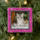 This lovely Kitten's 1st Christmas photo ornament with a pink glitter edge, the words "My 1st Christmas", your kitty's photo and name and the year will look beautiful on your tree. You'll cherish it and enjoy taking it out every year to put on your tree.