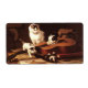 Vintage painting of a mother cat and her kittens playing with a guitar