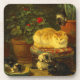 Coasters featuring Henriëtte Ronner-Knip’s oil painting Kittens at Play (1821-1909). A mother cat looks on as her four kittens are playing on a chair, plant, and food bowl. A perfect gift for cat lovers and Romanticism enthusiasts.