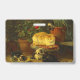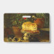 Badge featuring Henriëtte Ronner-Knip’s oil painting Kittens at Play (1821-1909). A mother cat looks on as her four kittens are playing on a chair, plant, and food bowl. A perfect gift for cat lovers and Romanticism enthusiasts.