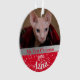 Celebrate your kitten's first Christmas with this personalized ornament. With a background of red with white snowflakes and a silver stripe, just add your cat's name and the year along with two photographs or your cute little feline!
