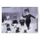 Funny vintage artwork in shades of grey showing a teacher trying to teach a group of kittens to sing