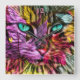 Kitty Cat Fall Leaves Colourful Artsy Design Square Wall Clock