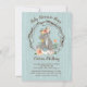 Super cute watercolor kitten and her mom cat baby shower inviations with pretty flowers, and branch wreath on a light grey woodgrain background. Boho nature woodland feel. The back are balls of yarn. Perrrfect for a little boy to be!
