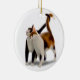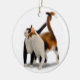 Original fne art design of a tuxedo and a calico cat by designer Carolyn McFann of Two Purring Cats Studio on a quality ornament for feline fans.