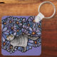 Kitty Cat Purple Daisies Grey Cat Art Grey Cats Key Ring