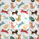 Cat lovers will adore this cute kitty cat pattern with jumping, sitting and sleeping cats featuring "meow" in different languages.