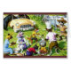 Don't know where the kittens are but the adult Kitty cousins are around the fire. One is cooking in his chef hat. Another has caught a fine fish for dinner and he's wearing a cowboy hat and boots. And there's a BEAR breaking into their car and they don't even know it.