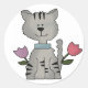 Cute kitty cat stickers, with country primitive artwork of a grey kitty and colourful flowers. Adorable stickers for any cat lover. Matching return address labels and postage stamps makes a great little mail set.