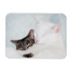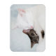 White cat and tabby cat snuggle up together in a hug for a snooze cat lovers flexible fridge magnet