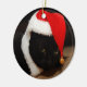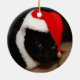 Adorable Christmas tree ornament with a photograph, of a black cat wearing a Santa hat. Great cat picture sure to please any cat lover. Great for the cat ornament collector.