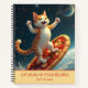 This kitty surfing through space on its pizza will make your recipes purrfect if you love cats and pizzas.