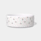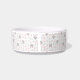 Discover our charming cat bowl featuring a playful pattern on a clean white background. The design showcases simplified, stylised cat faces with ears and eyes, along with adorable paw prints and fish bones, all rendered in a soft vector style. The gentle colour palette combines light grey elements with pink outlines and accents, including the inside of the cat's ears, creating a harmonious and inviting look. Perfectly balanced and evenly distributed, this pattern adds a whimsical touch to your pet's dining experience—ideal for cat lovers seeking a stylish and playful bowl.